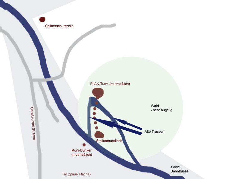 Bei dem mutmaßlichen Flakturm und dem Stollen handelt es sich nach neuesten Informationen "lediglich" um einen Kalkofen und seinem Zuluftschacht...