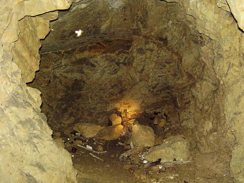 Hagen a. Tw. = Hagen am Teutoburger Wald. Der Stollen ist etwa 7 Meter lang und grob in den Fels gehauen, der Eingang wurde wohl durch Naturstein und Klinker befestigt.
