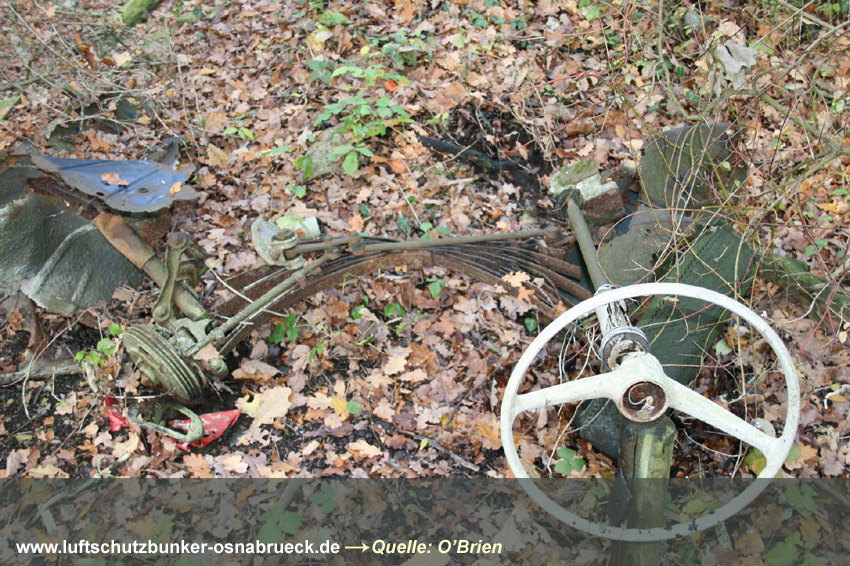 Reste eines VW-Käfers an vermutetem Bunkerstandort im Hüggel